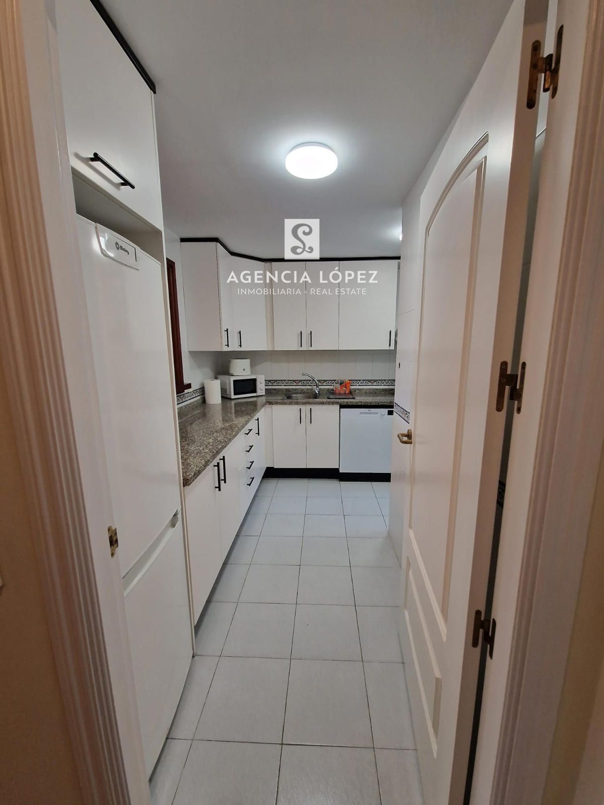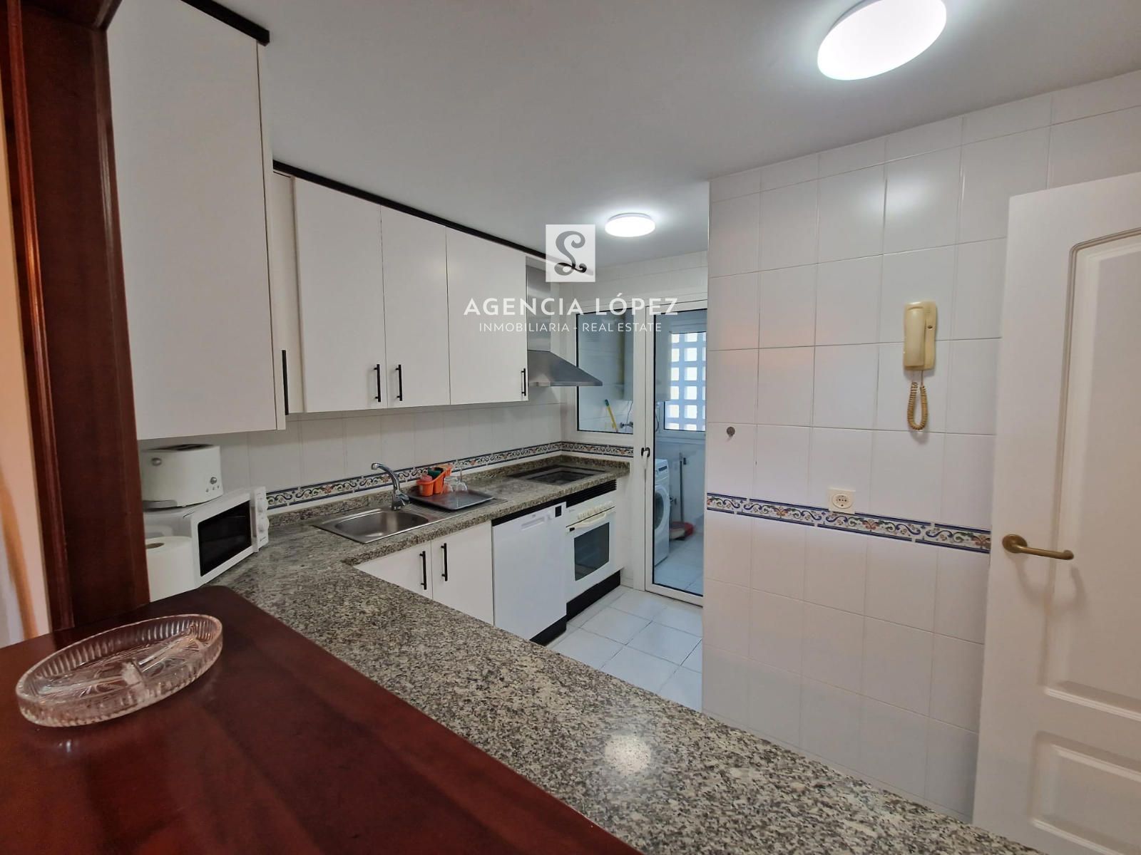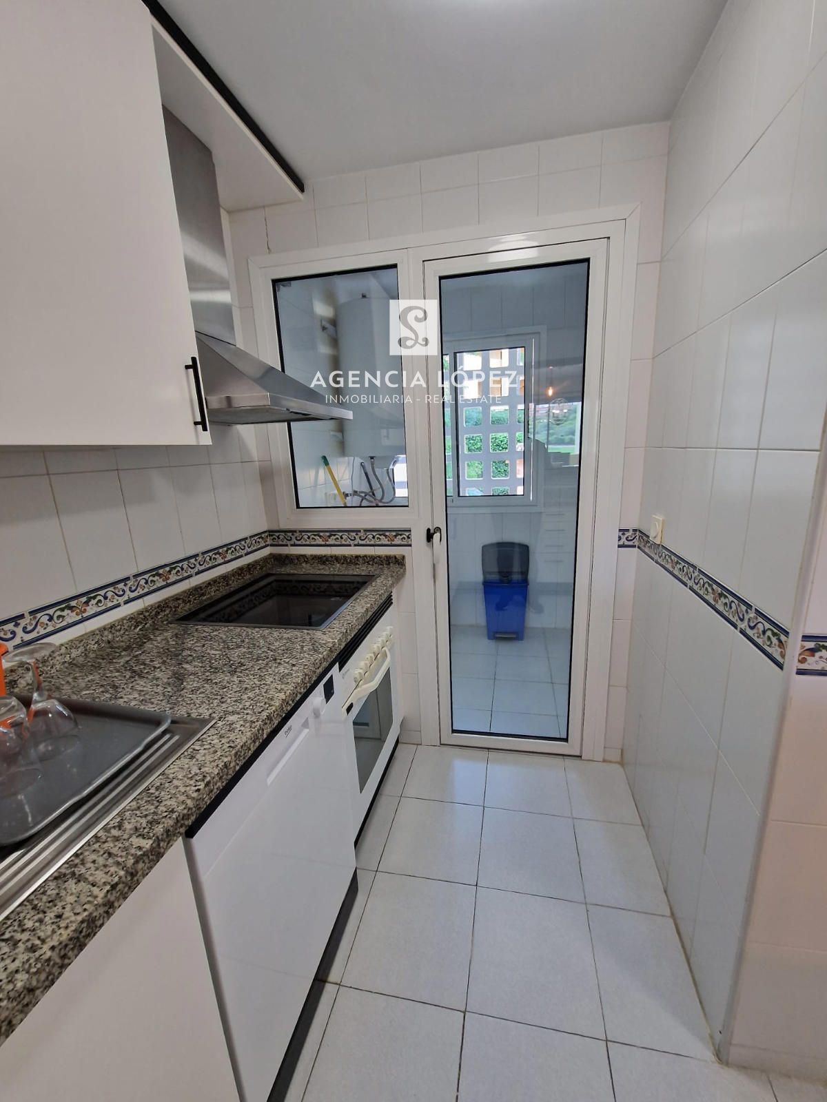 El salón-comedor es luminoso y cuenta con acceso directo a una terraza privada, ideal para disfrutar del clima mediterráneo durante todo el año. La cocina, totalmente equipada, se entrega amueblada y en perfecto estado de conservación.